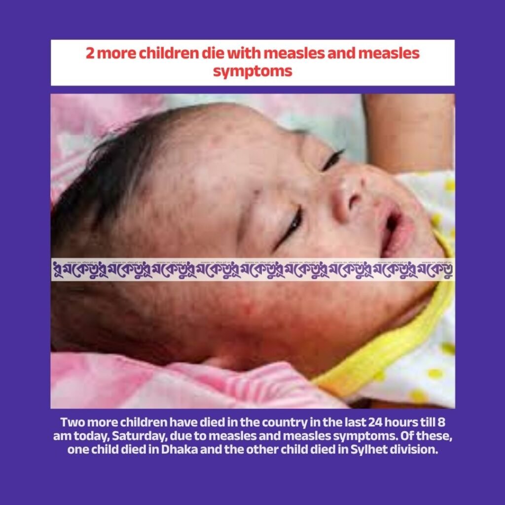 Two more children have died in the country in the last 24 hours till 8 am today, Saturday, due to measles and measles symptoms. Of these, one child died in Dhaka and the other child died in Sylhet division.