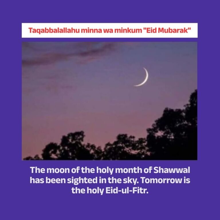 The moon of the holy month of Shawwal has been sighted in the sky. Tomorrow is the holy Eid-ul-Fitr.