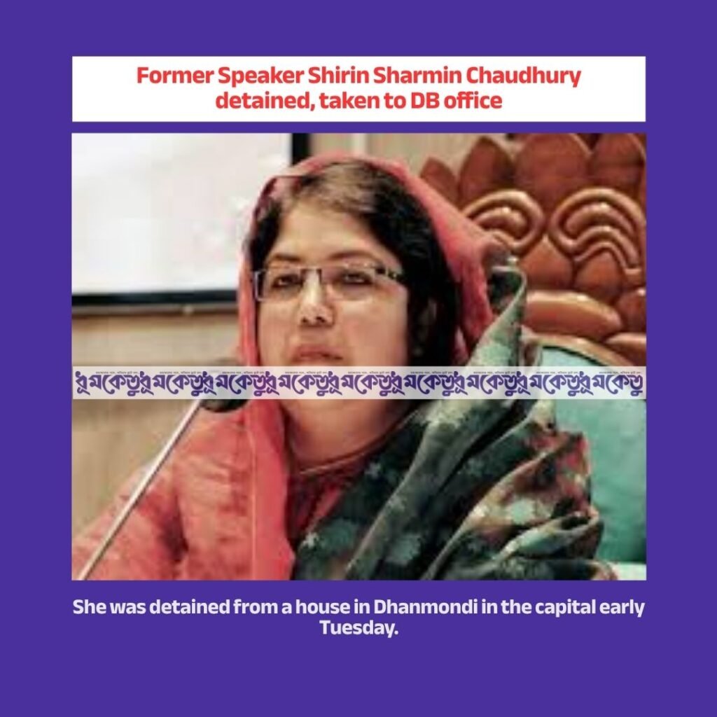 Former Speaker of the National Assembly Shirin Sharmin Chowdhury has been arrested by the Dhaka Metropolitan Detective Branch (DB). She was arrested from a house in Dhanmondi in the capital early Tuesday.