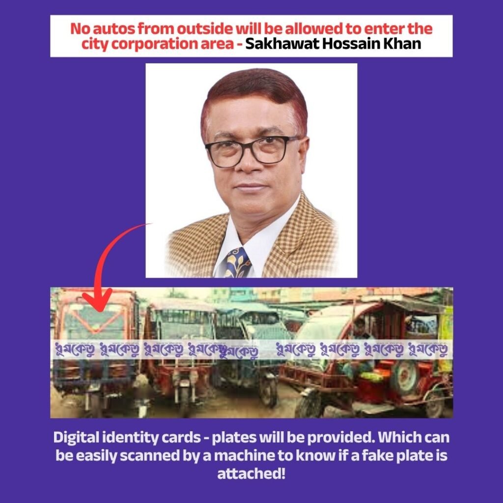 It is necessary to bring control over auto rickshaws to reduce traffic congestion in Narayanganj. For this, the city corporation will provide digital identity cards or plates for autos. If someone puts up a fake plate, there will also be a system to identify the fake plate by scanning it through a machine.